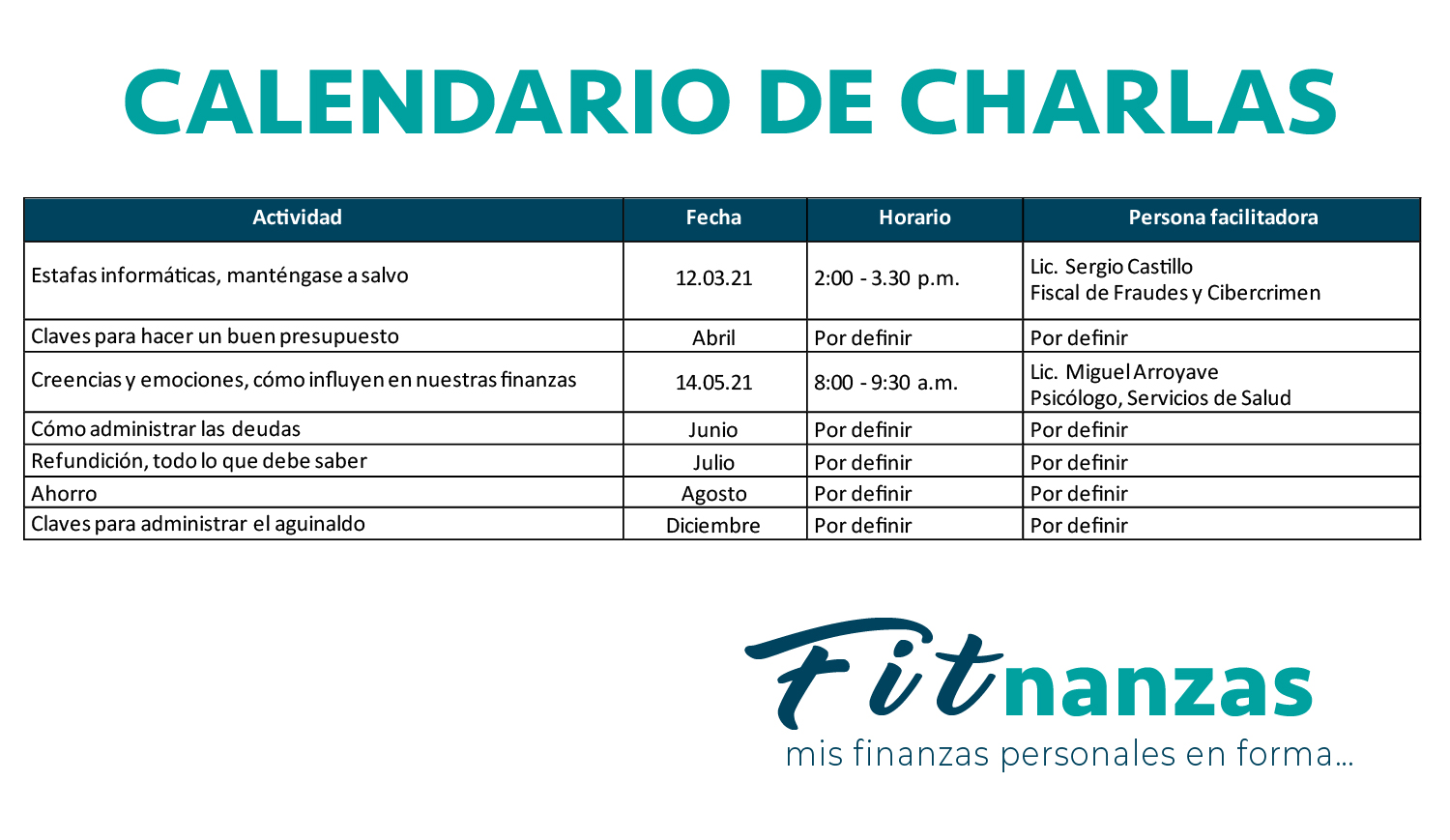 Personas expertas en el manejo de las finanzas personales le acompañarán durante un espacio de dos horas para repasar conceptos importantes y orientaciones para el fortalecimiento de su salud financiera.